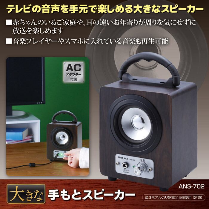 テレビのヘッドホンジャックにコードを接続するカンタン接続タイプです。複雑な接続や設定は不要で、コードの長さも約5メートルと使いやすく、大型テレビも離れて鑑賞することができます。電源は、乾電池(別売)でも、付属のACアダプターを使用して家庭用コンセントに差し込んでも使用できます。アンプ及びボリュームを内蔵しているため、テレビの音量を手元で自由に調節できます。デザインは、どこか懐かしいイメージのエボニー風の木目調で、落ち着いた感じです。乾電池使用時の電池寿命は、国産アルカリ乾電池使用の場合、約60時間程です。