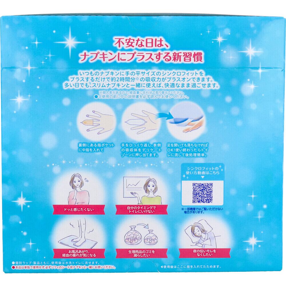 ●いつものナプキンに手の平サイズのシンクロフィットをプラスするだけで約2時間分の吸収力がプラスオンできます。
